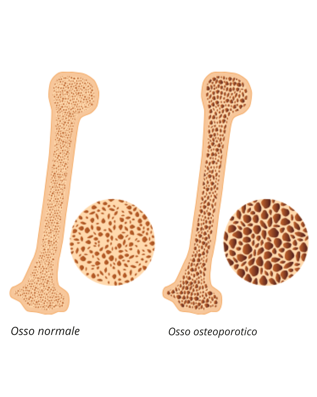 LβOSTEOPOROSI Γ¨ una malattia dellβapparato scheletrico caratterizzata da una diminuzione della massa ossea e dal deterioramento del tessuto osseo con conseguente aumento della fragilitΓ e predisposizione alle fratture, tra cui le piΓΉ frequenti sono quelle vertebrali seguite dalle fratture di femore e di arto superiore. In presenza di osteoporosi si crea uno squilibrio tra la quantitΓ di osso riassorbita dagli osteoclasti e quella prodotta dagli osteoblasti. Lβosso diviene fragile, poroso e il rischio di fratture aumenta anche per traumi minimi.